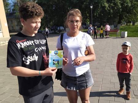 2. Школьники раздают буклеты об ООПТ, знакомя горожан с правилами поведения на ООПТ.